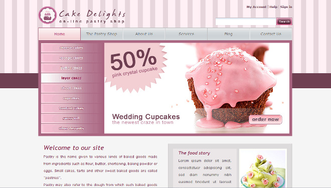 Confectionary / sweetsWebsite template for small online shop displaying baked goods perfect for home grown companies.