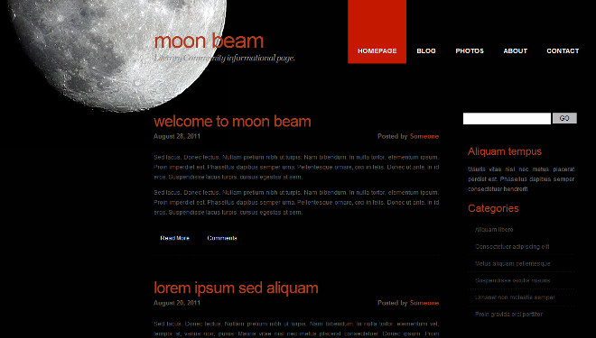 Alternate version of Moon BeamWebsite template for written works.